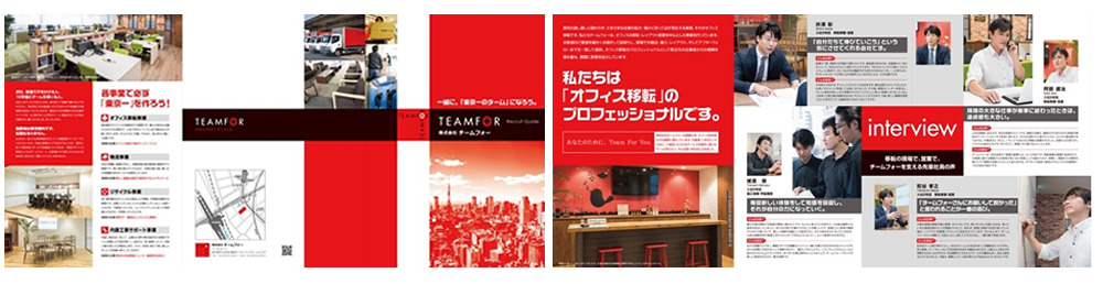 株式会社チームフォー様の事例は、企業の“らしさ”を視覚とストーリーで一貫して伝える点が参考になります。全体のトーンが統一されており、表紙から中面にかけて「どんな価値観の会社で、どんな仲間と働くのか」が直感的に伝わる構成です。