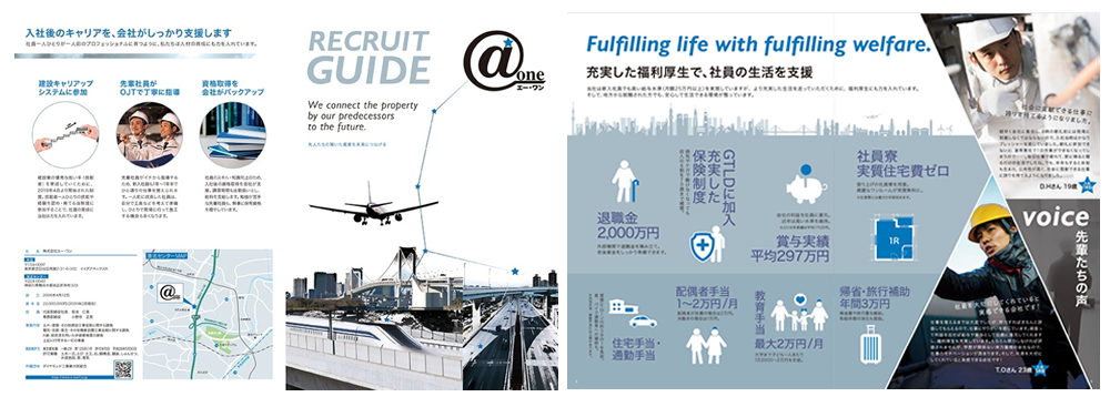 株式会社 A・ one 様の事例は、求職者の不安を減らし、応募・入社の意思決定を後押しする情報設計が参考になります。採用パンフレットでは、魅力訴求だけでなく「働く条件や環境が具体的に分かること」が信頼につながりますが、本事例はその点を意識した構成が見て取れます。